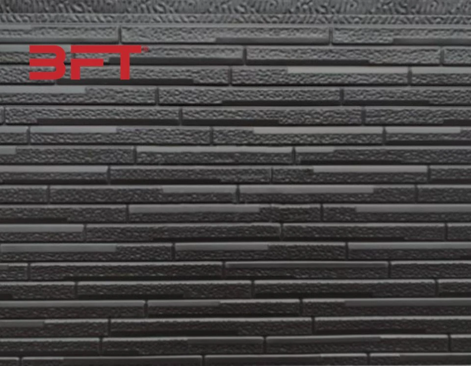 BFT insulated metal siding, the international light-weight walling material, integrates decoration, insulation, energy-efficiency, fire-proof together. Its metal surface can be designed and embossed into all kinds of styles: brick, marble, wood, stone etc. and there are more than 100 kinds of color for you to choose from. The core layer is polyrethane